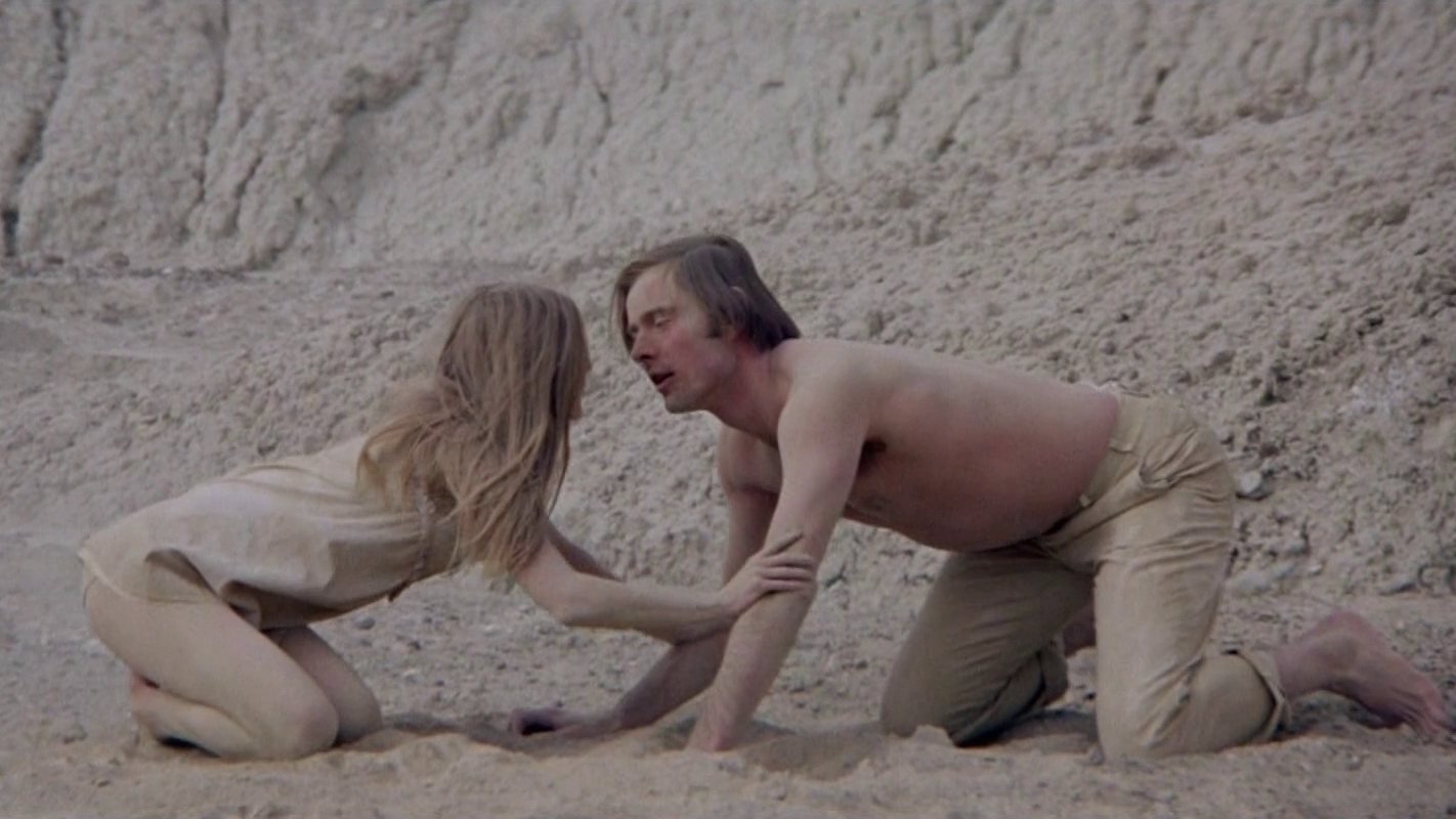 Synopsis: Anthropology student Daria, who's helping a property developer build a village in the Los Angeles desert, and dropout Mark, who's wanted by the authorities for allegedly killing a policeman during a student riot, accidentally encounter each other in Death Valley and soon begin an unrestrained romance.